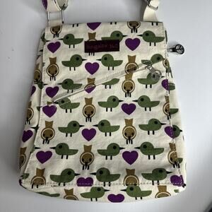 Bungalow 360 Birds Hearts Cream Canvas Crossbody Messenger Bag Multi Pockets