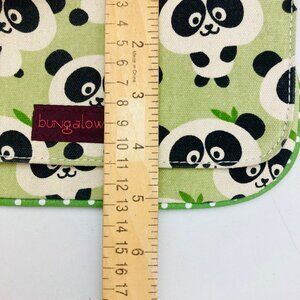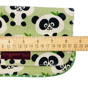 Bungalow 360 Panda Print Green Canvas Clutch Wristlet Wallet w/ Zipper 8.5x5"