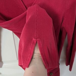 Cotton, Vintage, Retro, Red, Bright, Button Down, Button Up, Cardigan, Sweater, Long Sleeve, Preppy, Prep, Classy, Classic, Academia, Academy, School, Student, Teacher, Bungalow Brand, Embroidered, Knit, Cable Knit, Knitwear, Cable Knitwear, V-Neck, Tommy Bahama