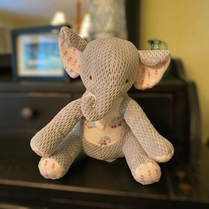 Bunnies By the Bay Gray Elephant Plush Toy Pink Flowers Print chenille 10"