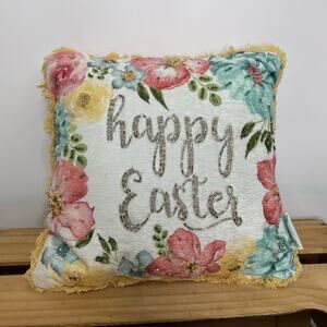 In great condition. Beautiful sequin detail, pipping border, floral, rabbits, bunny, square, rectangle. See measurements in pictures. Easter, home decor, bunnies, pastel, sequin. Set of 2 throw pillows.
