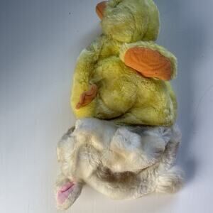 Experience the charm of the Bunny Chick Surprise, a reversible plush stuffed toy that promises to delight children and collectors alike. Crafted by Caltoy, this vintage treasure is a testament to the era's craftsmanship, featuring a double-sided design that reveals a softsheen easter surprise.