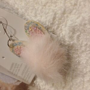 Bunny Easter Fuzzy Sparkly Fish Hook Earrings Claires NWT