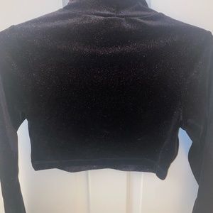 Cropped black long sleeve turtleneck with silver and purple reflective specs