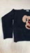 Intarsia knit Bunny holding Heart on front in light beige, red and brown colors on black background.
