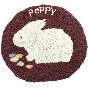 Bunny Rabbit Hooked Round Chair Cushion Cover Easter Poppy Cottage Core AS IS