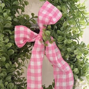 Bunny Wreath for Easter Pink Gingham Bow