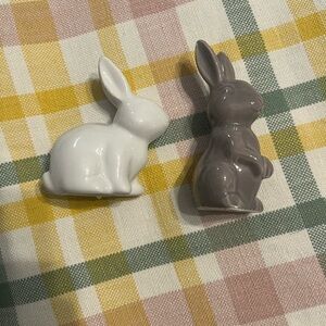 White and gray bunny ceramic salt and pepper shakers, in excellent condition