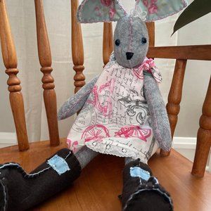 Luna Lapin Rabbit is one in a series of plushy friends. She is all handmade and is soft and cuddly and fun to play with.