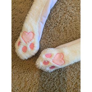 Bunny hat with ears that move. Press the paws and the ears go up and down. Super cute.