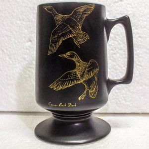 Buntingware Black Pedestal Mug with Gold Canvas Back Ducks