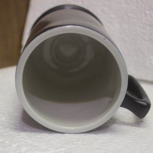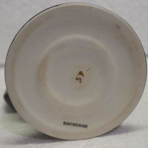This black Buntingware mug is in good condition with no cracks or chips noted. There is possible some light staining on the bottom inside. This is like a matte finish or maybe a very low gloss. The mug is about 5.25 inches tall. Please see images for more detail.
