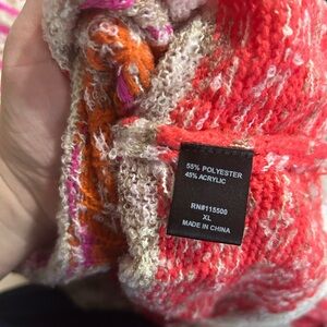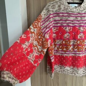 Bunulu XL Soft Mixed Media Electric Floral Stripped Boho Balloon Sleeves Sweater