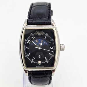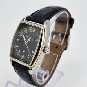 Buran Moonphase Mechanical Watch 34MM Black Dial Leather Bands Limited Edition