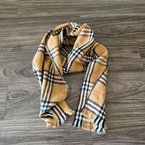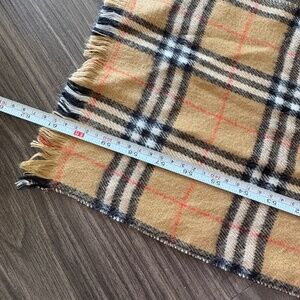 AUTHENTIC Burberry 100% Lambswool Scarf House Nova Check Vintage Plaid Full Length Long Fringe Scarf Tan Brown Red White Black