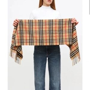 Burberry 100% Cashmere Scarf House Check Plaid Full Length Fringe