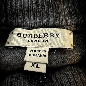 Burberry 1/4 Zip Sweater Nova Check Pullover Knit 100% Merino Wool Mock Gray XL
