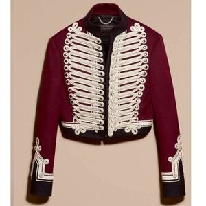 Burberry 2016 Runway Burgundy Doeskin Wool Cavalry Military Jacket size US 4