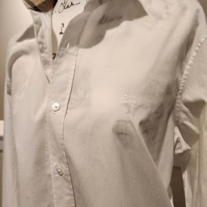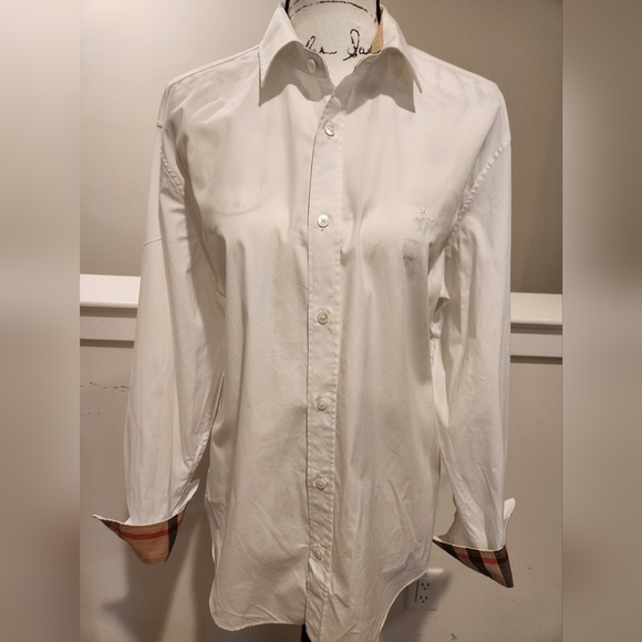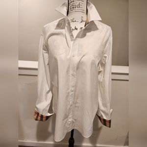 Burberry button-down shirt with classic nova check accents. This shirt has been gently worn but is in good condition.