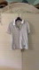 Burberry light weight short sleeve sweater shirt with classic tan and cream stripes. Slim fit design with collar V neck half button down, Ideal for everyday style. Size S (fabric does stretch) (does have a small dirk mark can be easily cleaned)