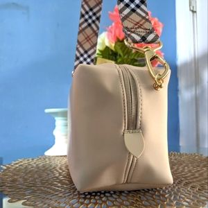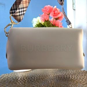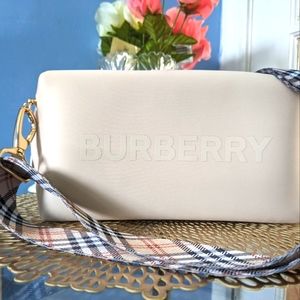 Burberry Embossed Logo Pouch with Gold Tone Hardware and two way zippers.