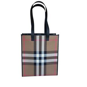 Burberry 8084551 Fabric & Leather Check Print Book Tote