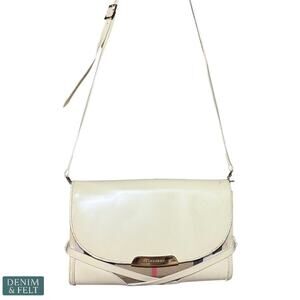 A classic Burberry silhouette with signature Housecheck plaid and elegant cream leather. Despite interior signs of use, the structure and branding remain sharp—perfect for adding timeless British style to your everyday look.