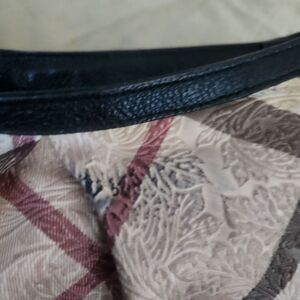 Used condition with flaws. Color transfer on plaid. Some leather flaked away on one bottom corner. Inside liner can use a cleaning but has no tears/holes