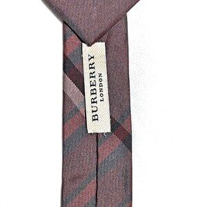 The image shows a Burberry necktie. Burberry is a British luxury fashion brand known for its distinctive plaid pattern, often referred to as the "Burberry Check".