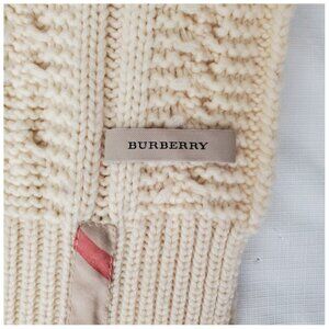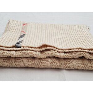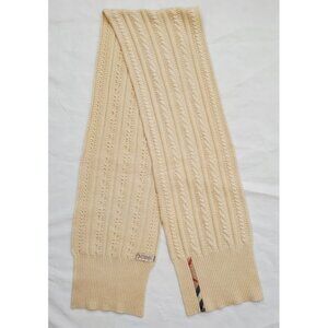 Unisex Authentic Burberry Cream Cable Knit Cream Wool/Cashmere Blend Scarf with Signature Plaid Pattern Trim Accent - 13" x 86"
