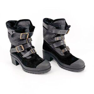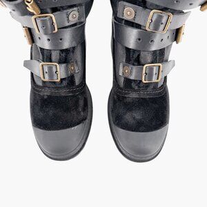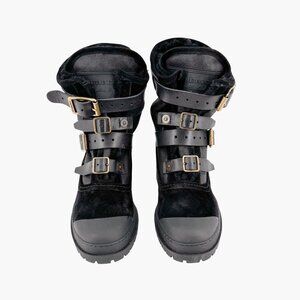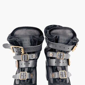 Burberry Aviator Dukes Boots EU 38 US 8 Black Suede Fur Lined Moto Biker Harness