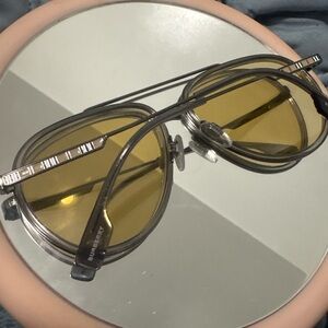 Elegant Burberry aviator sunglasses with amber-tinted lenses. Ideal for a sophisticated style.