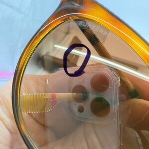 NOTE: Very small scratch on lens. See photo. Very hard to photograph. Glasses were a display piece in like new condition aside from scratch.