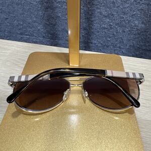 The BURBERRY BE3080 Silver / Brown Gradient 59 mm Women's Sunglasses are a stylish and high-quality accessory perfect for women who value both fashion and function. With a classic aviator style and a sleek silver frame, these sunglasses feature a check pattern and gradient brown lenses that offer a trendy touch. Made with durable metal frames and polarized lenses, these sunglasses not only protect your eyes from the sun but also make a statement with the iconic Burberry brand. Designed in Italy, these sunglasses exude luxury and sophistication for any fashion-forward woman.