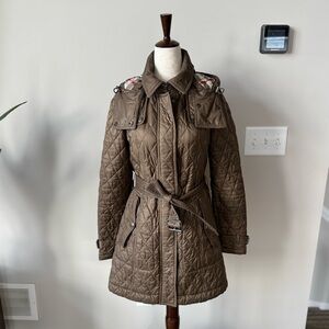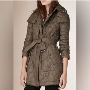 Burberry BRIT Nylon Diamond Quilted Belted & Hooded Parka - Olive