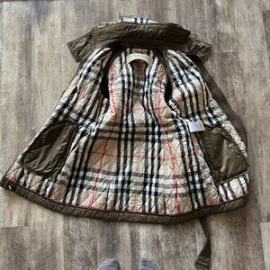 Excellent condition! Light-weight. True to size. Classic check pattern interior. Nylon inside & outside. Hood is removable.