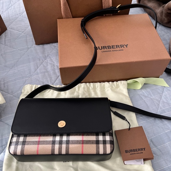 Burberry New Hampshire Vintage Check and Leather Note Bag. New, with tags, boxes and bags.