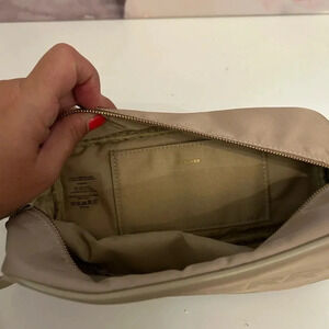 Gorgeous Beige/Gold color pouch for cosmetics, toiletries or any personal care. Excellent for travel and daily use. Fully Lined with Small interior pocket. Black Large Burberry Logo up font and Embossed Logo on carry Handle. 100% Authentic, Made Exclusively for the Burberry Fragrance Collection. Approx Dimensions: 4" x 10" x 3"