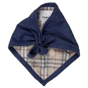 The Burberry Banana Navy Blue Nova Check Snap On Bob is a stylish and high-quality baby bib designed by Burberry. Made from comfortable cotton material, this bib features an adjustable neckband for a perfect fit. The navy blue color and baby theme make it a cute and practical accessory for feeding time. Perfect for keeping your little one clean during mealtime.