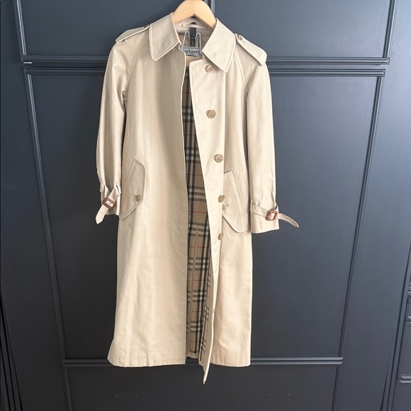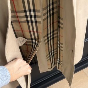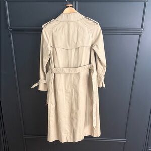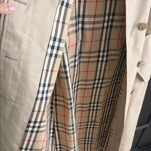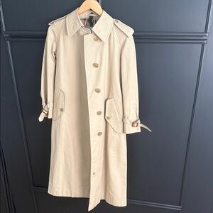 Perfect like new condition. Authentic. Elegant long trench coat 43” length. Features classic plaid lining and button details. Perfect for any occasion. Does not have a size label but fits like a women’s true XS.