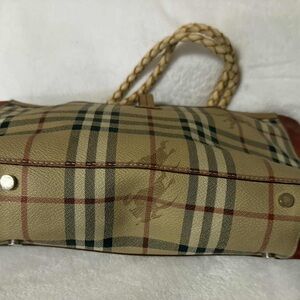 Burberry Leather Hand Bag Nova Check Pattern Elegant Burberry shoulder bag with iconic plaid pattern. Features braided handles and toggle closure.