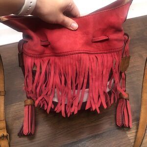 Burberry Belgrove Red Fringe Bucket Bag Crossbody