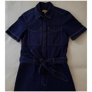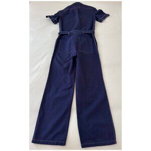 Burberry Belted Utility Jumpsuit | Size US 2 | Indigo Navy Blue w/ White Stitch