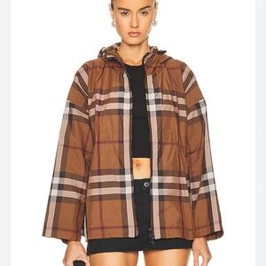 This Burberry Birch Brown Windbreaker is a beautiful lightweight piece perfect for any occasion—casual or elevated. Features the iconic Burberry check in the elegant birch brown colorway. Designed with an adjustable waist to highlight the feminine silhouette and add shape. Versatile and stylish, this piece is in very good condition with minimal signs of wear. A timeless staple for any wardrobe!