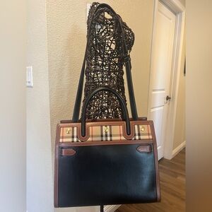 Burberry Black Calfskin Vintage Check Small Two Handle Title Bag