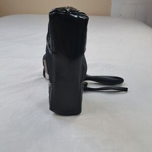 This Burberry black clutch is a sophisticated accessory, featuring a sleek and compact design perfect for evening wear. The glossy finish and metallic hardware accent add a touch of elegance, while the wrist strap ensures easy carrying. Ideal for holding essentials, this clutch combines style and practicality effortlessly.