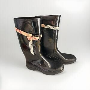 These boots are sized 8.5 US and 39 EU, and were made in Italy with the highest quality materials. The Burberry brand adds a touch of luxury to your outfit, making these rainboots a must-have for any fashion-forward woman. Don't let a little rain ruin your style – grab these Burberry Kenyon Nova rainboots and strut out in confidence.