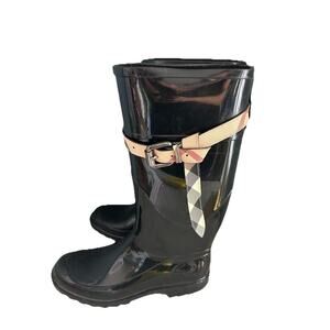 Burberry Black Kenyon Nova Check Roscot Belt Rainboots 8.5 EU 39 Plaid COA Italy