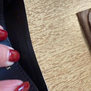 Elegant Burberry piece in sleek black leather. Features subtle branding and gold-tone detail.
