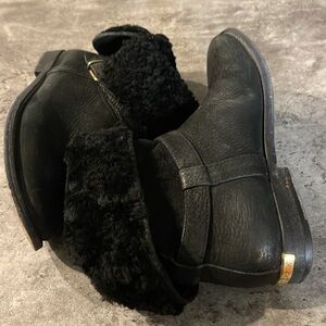 Burberry Black Leather Shearling Explorer Women's Snow Boots 37.5